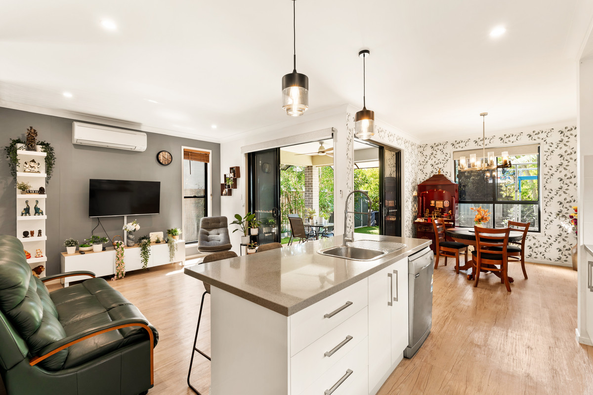 -Open-plan living and dining area seamlessly connecting to the covered alfresco
